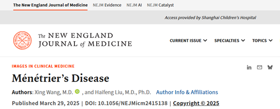 消化内镜中心刘海峰教授团队在新英格兰医学杂志上发表治疗罕见青少年型Ménétrier病论文