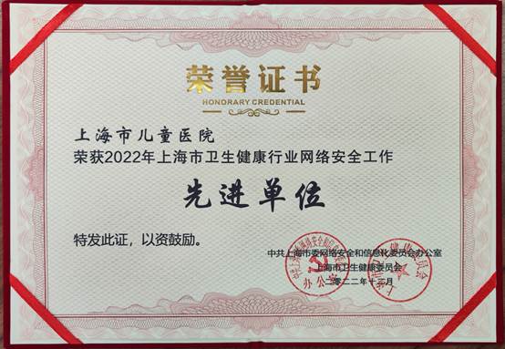 我院荣获“2022年度上海市卫生健康行业网络安全工作先进单位”称号
