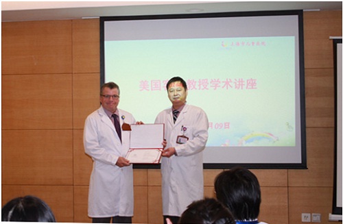 美国匹兹堡大学医学院外科教授George K Gittes应我院小儿外科邀请于2016年11月7日至11日来我院进行为期一周的访问。George K Gittes,医学博士,教授,博士生导师,现任匹兹堡儿童医院小儿外科主任、外科首席医生、外科研究所主任,匹兹堡大学医学院外科教授,上海交通大学医学院客座教授。访问期间,吕志宝副院长为George K Gittes教授颁发了上海交通大学医学院客座教授聘书。George K Gittes教授先后参观了我院门急诊、重症监护室、手术室和住院部等。并举办了关于胆道闭锁、基础研究、外伤和胰腺疾病的讲座,介绍了匹兹堡儿童医院目前的临床与研究情况,并展开了热烈的讨论。
