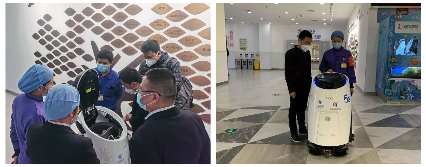 协同保障部在门诊试用扫地消毒机器人,进行设备的网络接入,由机器人进行地面清洁服务,加强门诊地面的消毒,可以阻断“人传人”的新冠病毒传染链条,减少院内传染的可能性,提高清洁工作效率。