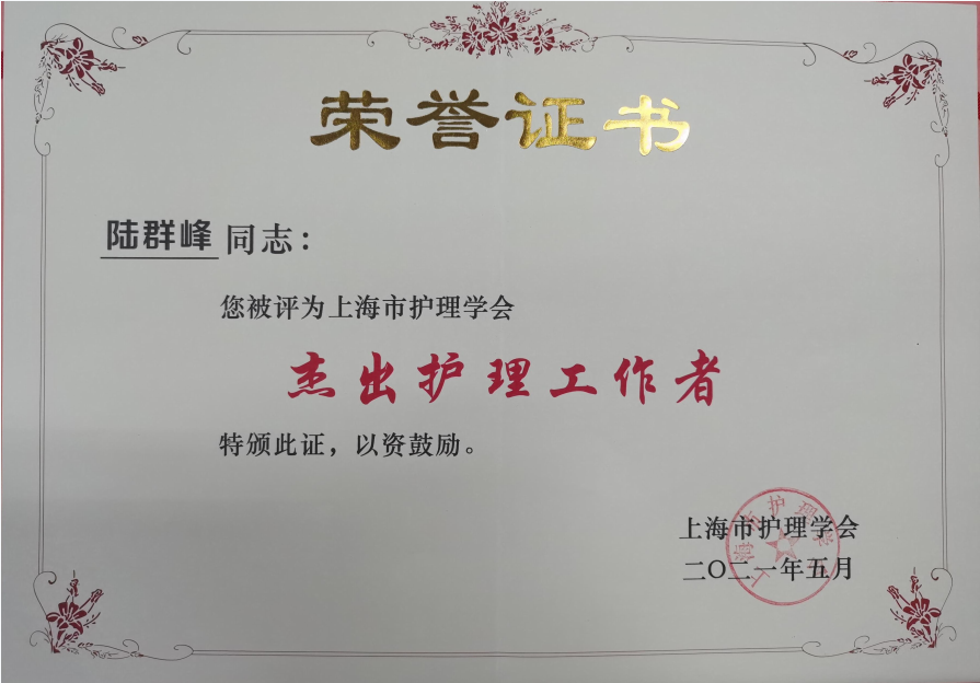 我院护理部主任陆群峰荣获上海市护理学会2021年“杰出护理工作者”