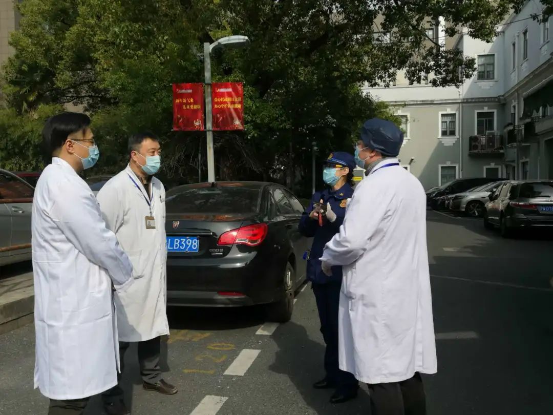 共产党员宋健平同志原来计划大年初二请假送父母、小孩回老家,但因防疫工作而主动放弃休假,一手挑起安保人员防护物资的统计、请领、发放、台账记录等工作,并带领保安人员及时优化工作举措,每天高峰时段都到泸定路院区各安保执勤点位现场督导。