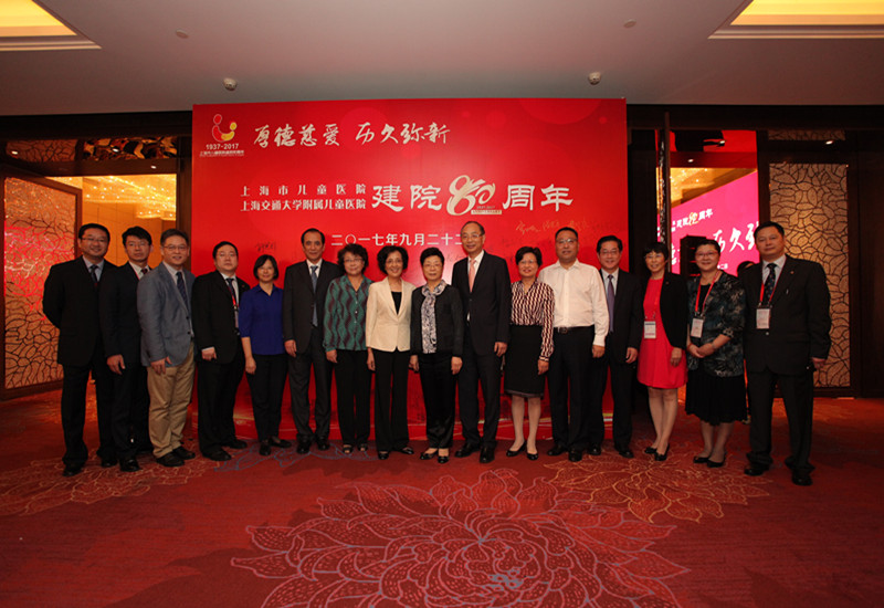 上海市人大副主任钟燕群、上海市副市长翁铁慧、上海市政协副主席/上海交通大学副校长蔡威、上海市政协副主席方惠萍、上海市政府副秘书长宗明、上海申康医院发展中心主任陈建平、上海市卫生计生委党委书记黄红、上海交通大学医学院党委书记范先群、普陀区区委书记曹立强、静安区副区长鲍英菁等领导均亲临出席此次活动。中国医师协会儿科医师分会、中华医学会小儿外科分会、中国研究型医院学会、上海市儿童健康基金会、上海市医学会、上海市医师协会、普陀区卫计委、静安区卫计委、嘉定区卫计委、黄浦区卫计委、长宁区卫计委等单位主要领导也都出席了此次纪念活动。参加本次纪念活动的还有来自全国各地的38家合作共建单位的领导和同道、医院历任院领导、医院中层干部、科主任、护士长及学生代表。诸多重量级嘉宾济济一堂,足以体现各级领导对儿童健康事业的关心、对儿童医院80年发展历程的肯定和重视。