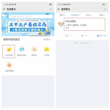 3、选择在线复诊的科室以及团队,发起复诊申请;