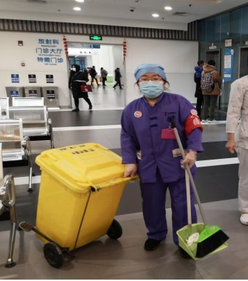 除夕夜,保洁阿姨也依然兢兢业业,牺牲休息时间,为医院营造良好的卫生环境。
