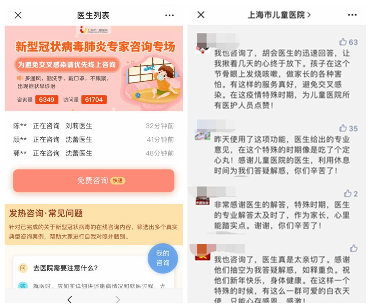 为积极防控新型冠状病毒感染肺炎疫情,缓解群众紧张情绪,正确引导患者就医,减少线下传播交叉感染的风险,信息部按照医院疫情防控总体部署及安排,取消春节假期,迅速回到工作岗位,与疫情赛跑,加班加点调试设备和系统,2天时间完成了“在线发热咨询”系统的上线使用,儿童医院成为上海首批开展“在线发热咨询”业务的市级医院。