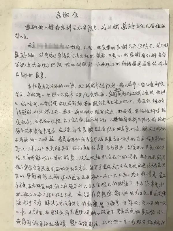 一段时间的恢复后,成成终于又活泼好动,一日三餐胃口大开。“以前他很挑食,现在什么都吃,还说最想吃关东煮。”经历了一年多跌宕起伏的治疗,成成妈妈的脸上终于露出了笑容,出院后还专门写了感谢信,表达了对全体医护人员的感激之情。