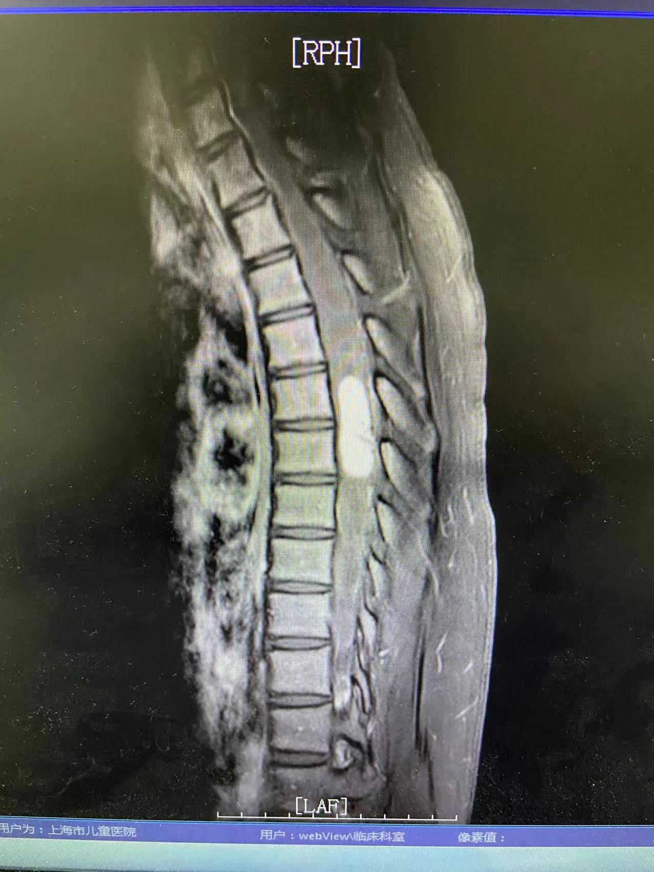 清清是一名12岁的女孩,1月前突然感觉右腿无力,爸爸妈妈以为是劳累引起的,休息一下就好了,因此并未引起足够重视。可始料未及的是,清清右腿的症状始终没有好转,而且越来越严重,甚至连走路姿势都发生了改变,最后连在家里上厕所都无法自己完成、。爸爸妈妈带清清前往当地医院进行诊疗,但未能有效控制症状;遂又辗转多家医院,但因病情复杂,均未达到理想的诊治结果。经历了多地求医无门的困境后,爸爸妈妈带清清来到神经外科詹琪佳副主任医师的门诊,此时清清只能依靠轮椅在爸爸的帮助下才能移动。