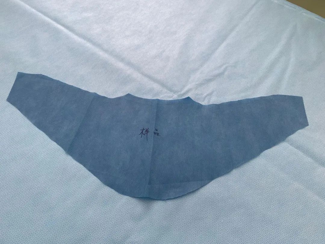 “这些围脖都是我们纯手工制作的哦,利用的都是手术器械包装的无纺布边角料。”供应室护士长刘佳说。借来裁缝剪刀,买来简易缝纫机和针线,儿医供应室“裁缝铺子”就这么开张了。刘佳带领小伙伴们自己踩线、自己缝针,根据一线反馈不断改良,一片小小的围脖先后改进了六版,最新版本的下颚角采用“浅U”形设计可以很好的贴合口罩下缘,脖颈和肩膀处采用“蝙蝠翅膀”式的翼型加长设计,可以很好地保护使用者脖子和衣领,而且适合各种胖瘦体型的人员。既能保护工作人员裸露的脖颈、衣领免受飞沫污染;一次性使用后丢弃,避免反复使用而增加感染风险。