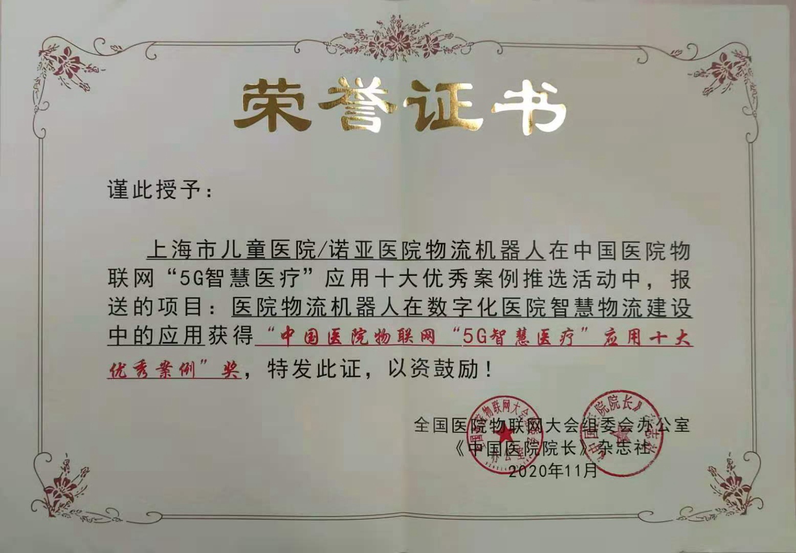 我院物流机器人项目获2020中国医院物联网应用“5G智慧医疗”十大优秀案例