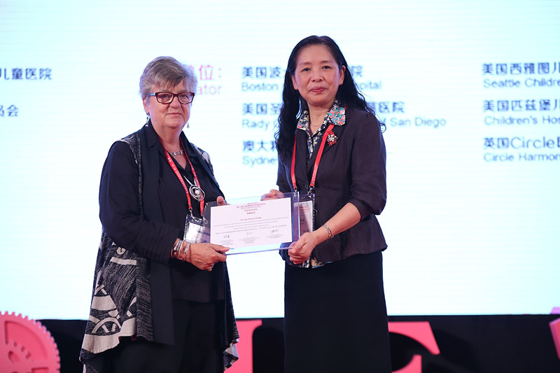 大会主持李秋教授为UCL大奥蒙德街儿童健康研究所Lyn博士授讲者证书