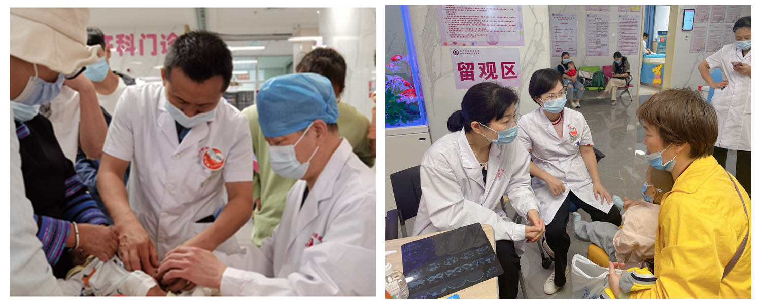 期间,吕志宝副院长携普外科吴一波医师、手术室李燕护士为三例先天性肛门闭锁的患儿施行带教手术;我院超声科主任许云峰、新生儿科副主任蔡成、耳鼻喉头颈外科顾美珍副主任医师为来自红河州13县市的医生进行专题授课,包含经典病例分析和临床经验介绍,获得热烈反响。专家们还在红河州妇幼保健院绿洲院区开展了带教门诊和教学查房;切切实实地造福红河州儿童,为提升当地的儿科医疗服务水平提供了帮扶指导。