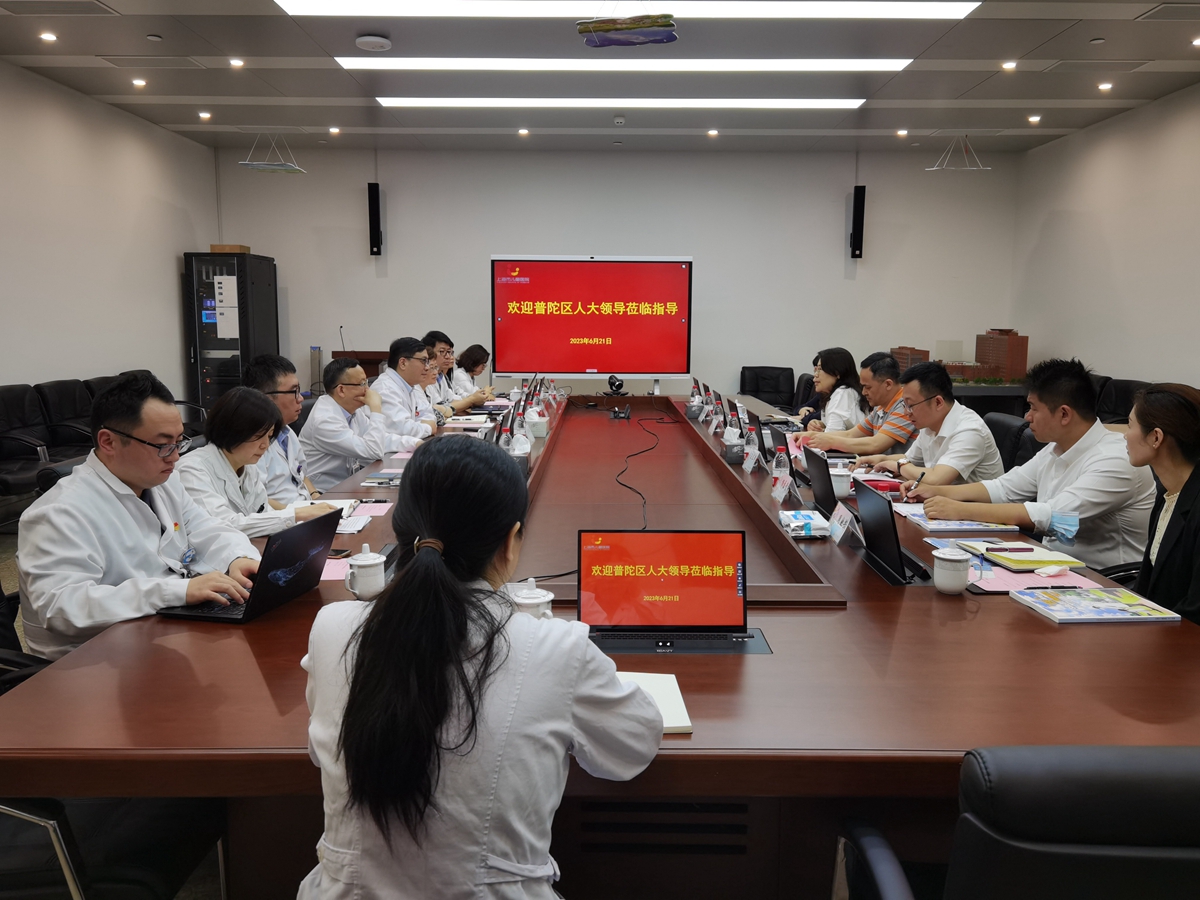 6月21日上午,普陀区人大常委会副主任吴凌昱一行6人来我院泸定路院区调研。医院院长鲁冰、党委副书记徐文静、副院长杨晓东、总会计师张胜及相关科室负责人参加调研。