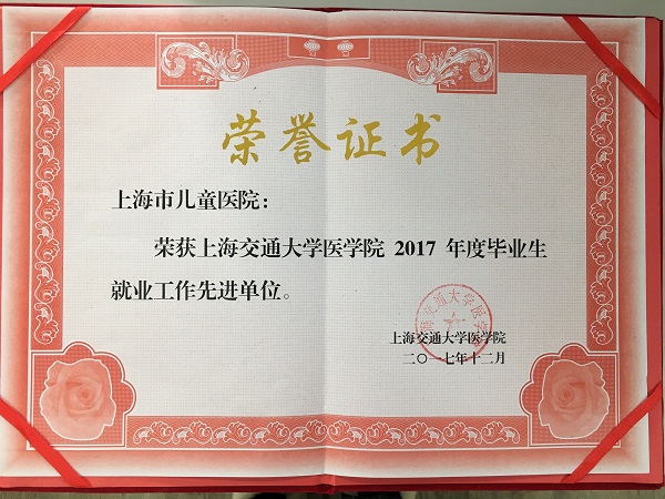 日前,在上海交通大学医学院召开的2017年度学生工作总结会上,我院荣获“上海交通大学医学院2017年度毕业生就业工作先进单位”称号。