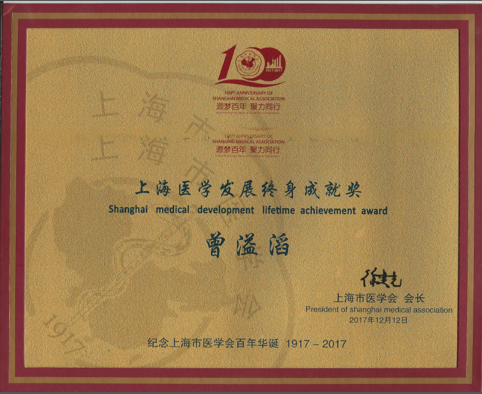 在2017年12月12日召开的上海市医学会100周年纪念大会上,我院曾溢滔院士荣获上海医学发展“终身成就奖”。