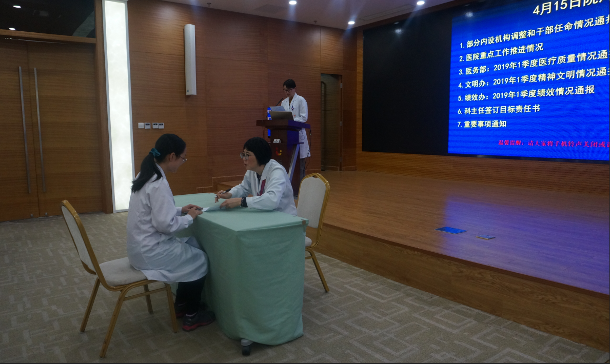 会上,丁俭书记与22位职能部门负责人签订了年度目标责任书,将安全风险防控各项工作与科主任年度考核挂钩,确保“一岗双责”真正落到实处。