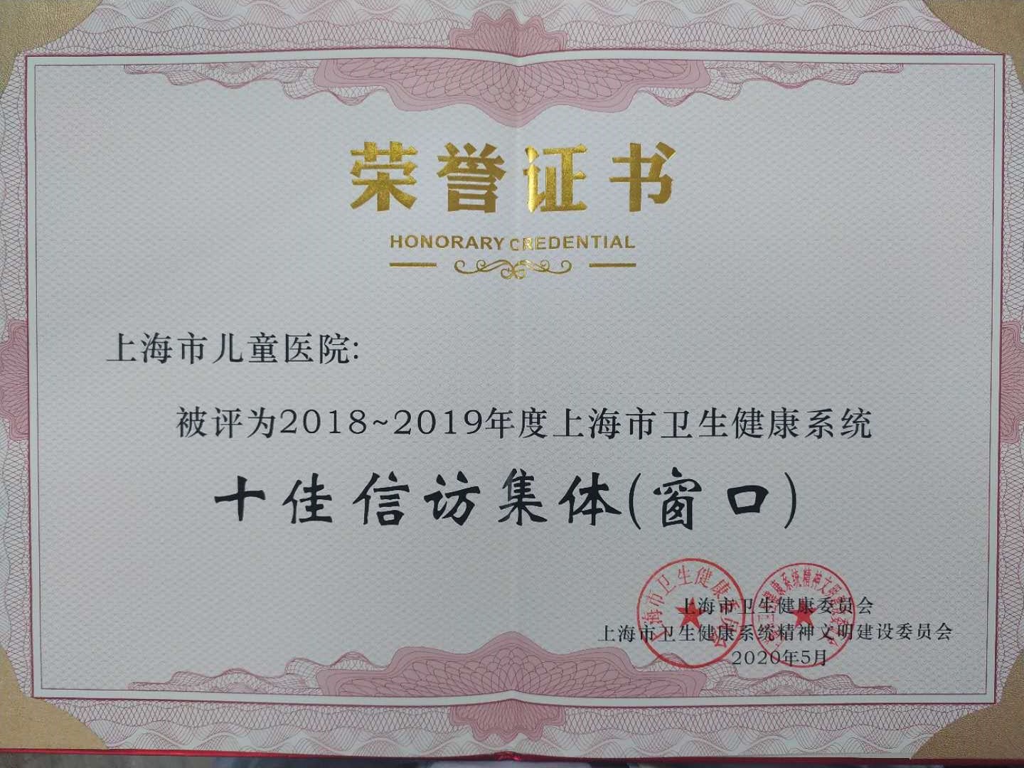 上海市儿童医院党委认真学习贯彻习近平新时代中国特色社会主义思想,将总书记关于加强和改进人民信访工作的重要指示精神与医院工作实际相结合,把信访维稳列入年度安全风险防控工作重要内容,层层分解落实责任。坚持以人民为中心,切实发挥信访工作“了解民情、集中民智、维护民利、凝聚民心”的重要作用,加强医患沟通,改善就诊环境、完善便民举措,不断提高病家的获得感与满意度。加强日常教育、管理、监督和考核,运用信息化平台切实推进“三全双零一低”,即全院全员全覆盖,零安全事故、零维稳事件,低医疗事故。信访工作的积极开展得到了上级的认可,近日,我院喜获2018-2019年度上海市卫生健康系统“十佳信访集体(窗口)”称号。