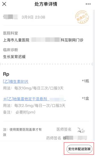 因为经常来院就诊的缘故,在在线复诊页面,小琴妈妈“轻车熟路”地提出了开药需求,并且上传了孩子近期复发的照片以及过往的就诊记录。网上接诊的皮肤科王艺蓉医师根据病情很快开出了约可再用两周的药膏。令家长惊喜的是,儿童互联网医院不仅能开处方、送药到家,还能使用医保支付!上午10点37分,足不出户的她顺利地完成了缴费,下一步就等收快递了。
