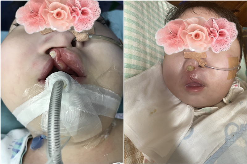 来自西藏的小卓玛嘴巴从中间完全裂开,上唇向外翻,牙齿长到了人中的位置,右侧鼻孔内部裂开,面部有着非常明显的变形。小卓玛家人介绍,孩子因为是重度唇腭裂,已经不能自主饮食,需要通过食管喂养,孩子又因患有脑病,呼吸功能不好,手术中气管插管很难做,尤其是要拔掉插管难度很大,所以孩子以前就诊的几家医院都因难以插管而不能手术,导致孩子至今18月大也未得到及时诊疗,家人越等越心急,直到经人介绍来到上海市儿童医院耳鼻咽喉头颈外科。